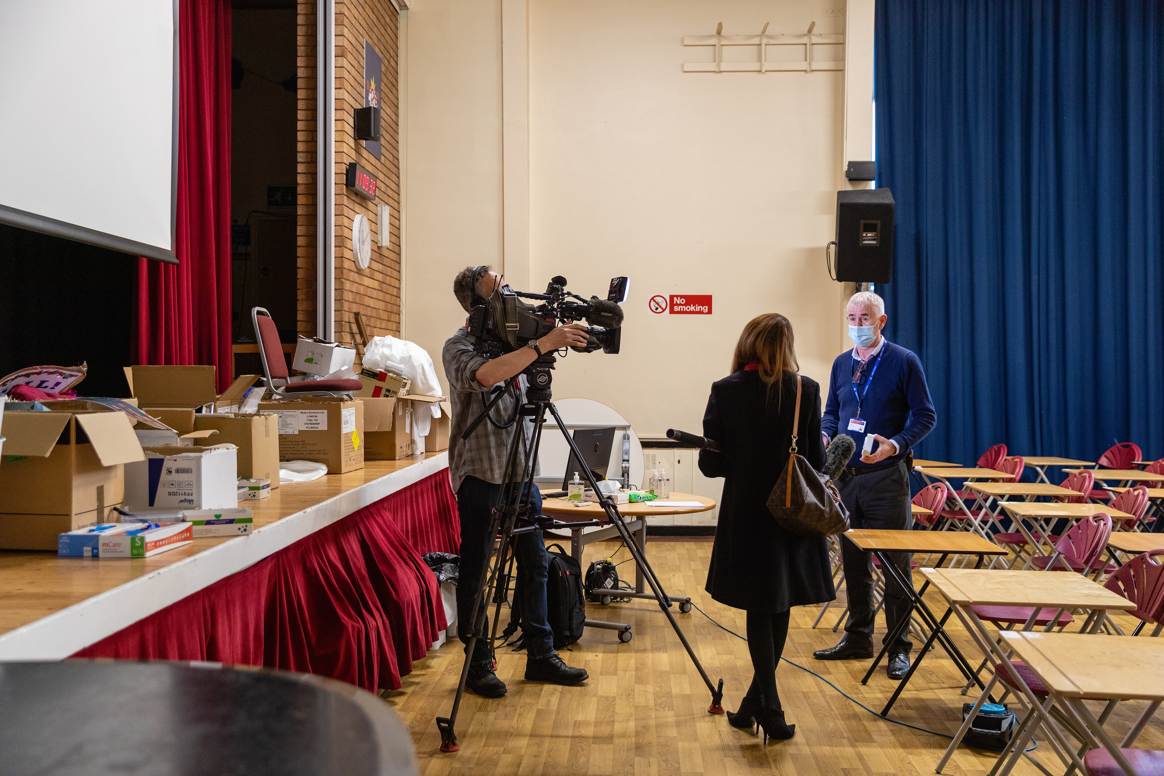 Workstation Preparation by NHS Staff on Vaccine Day. 2021.